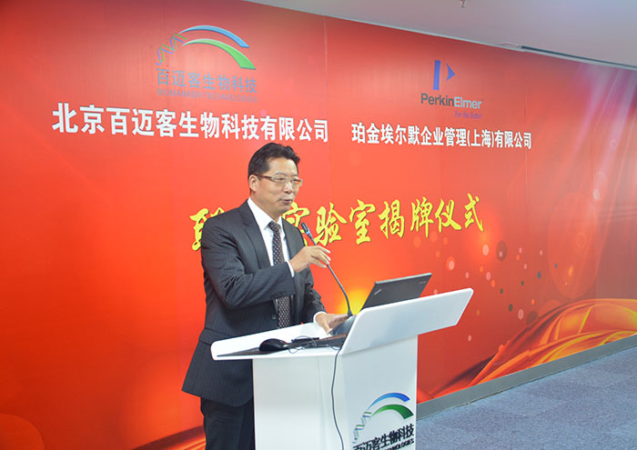 揭牌儀式上,百邁客CEO鄭洪坤在致辭中表示:“百邁客與珀金埃爾默公司建立聯(lián)合實驗室,將展開深入合作。雙方將聯(lián)合開發(fā)更加適用于高通量測序的 自動化文庫構(gòu)建系統(tǒng),此舉將大大提升測序前樣品處理的自動化水平,提高百邁客在基因測序行業(yè)的競爭力。與此同時,珀金埃爾默公司也將借助百邁客在國內(nèi)的營 銷體系進一步拓展在中國,乃至亞太地區(qū)的市場占有率。珀金埃爾默公司覆蓋全球的業(yè)務(wù)團隊也將助力百邁客生物云平臺在全球市場的開拓。我相信在雙方共同努力 下,通過真誠密切的實質(zhì)性合作,聯(lián)合實驗室的建設(shè)一定會達到互惠雙贏,共同發(fā)展的目的,一定會為企業(yè)合作塑造新典范,貢獻新經(jīng)驗?!?/p>