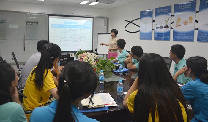 北京百邁客生物科技有限公司人力資源部經(jīng)理徐春花女士首先介紹了企業(yè)有關(guān)情況,包括企業(yè)的發(fā)展史、主營業(yè)務(wù)、科研創(chuàng)新、學(xué)術(shù)成果、人才隊(duì)伍以及未來戰(zhàn)略等。哈工大師生對(duì)此表現(xiàn)出了濃厚的興趣,也充分肯定了百邁客所取得的成就。