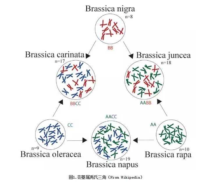 芥菜的基因組是異源四倍體(AABB),在“禹氏三角”中由白菜(AA),黑芥(BB)雜交后加倍形成,在演化過程中變異類型非常豐富。問題是油用芥菜的AA和菜用芥菜的AA是來自同一個亞種,還是來自多個亞種呢,這個問題就是A亞基因組的起源問題。