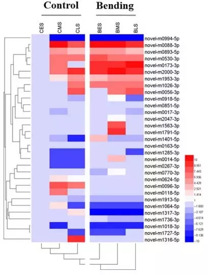 Fig2. 差異表達(dá)新miRNA聚類熱圖
