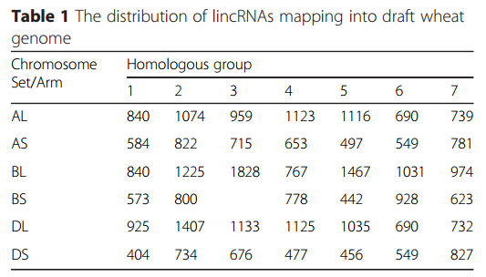2、這種比對(duì)結(jié)果顯示:響應(yīng)真菌感染表達(dá)的lincRNAs能比對(duì)到小麥所有亞基因組上,說明小麥響應(yīng)真菌感染由A、B、D三個(gè)亞基因組協(xié)同發(fā)揮作用。