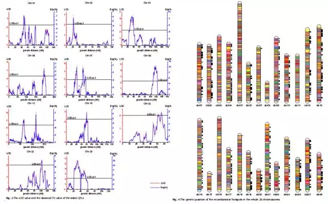 (2)重組熱點分析發(fā)現(xiàn)26條連鎖群中,21條含有重組熱點區(qū)域,A套中9條LG含有重組熱點,D套中12條LG含有重組熱點。所有LG中,13號含有重組熱點最多,有196個。