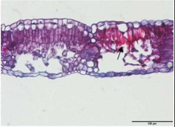 圖3:立體顯微鏡下不同葉齡的葉片病變部位