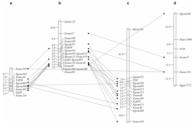 普通小麥?zhǔn)侵饕募Z食作物之一,但由于小麥條銹病菌的侵害,使得小麥產(chǎn)量逐年降低,尤其是在西南和西北地區(qū)。條銹病抗性分為全生育期抗性(ASR,包括幼苗和成株)和成株抗性(APR),前者通常是單個(gè)主效基因控制的,是傾向于針對某一特定菌種而產(chǎn)生的抗性,而后者的抗性則不針對某一特定菌種且為數(shù)量遺傳,其保護(hù)水平通常是不完全的,并受生長階段,溫度,濕度和接種量的影響。因此,定位這兩種小麥抗條銹病抗性基因是當(dāng)務(wù)之急。