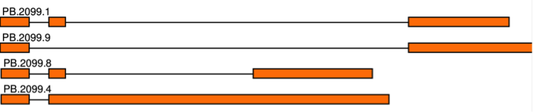 ????????可變剪接在產(chǎn)生轉(zhuǎn)錄本多樣性、控制調(diào)節(jié)生長發(fā)育等方面起決定性作用,可變剪接可視化能夠?qū)ν怙@子結構進行展示,有助于更直觀分析轉(zhuǎn)錄本可變剪切事件。