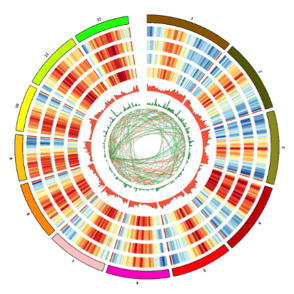 ????????通過Circos圖可以直觀比較基因組和三代測序結果中基因密度、轉(zhuǎn)錄本密度,以及l(fā)ncRNA和融合轉(zhuǎn)錄本在染色體分布。