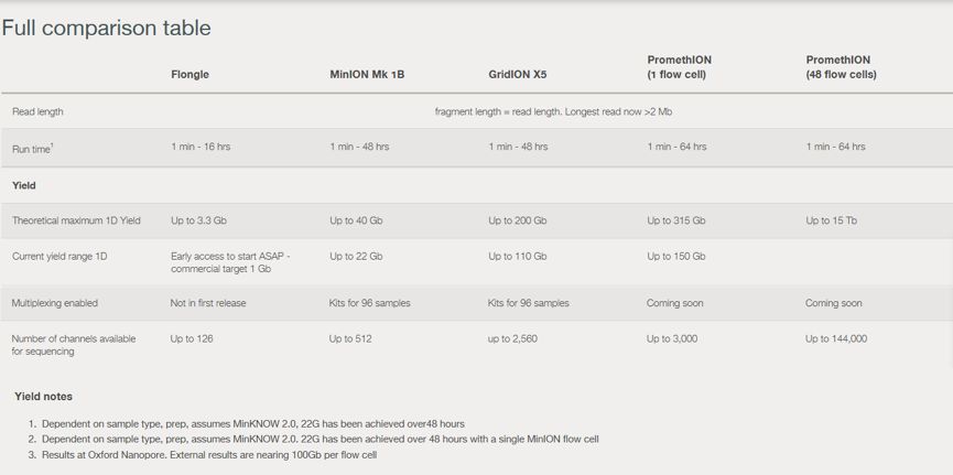 Oxford Nanopore各測序平臺比較