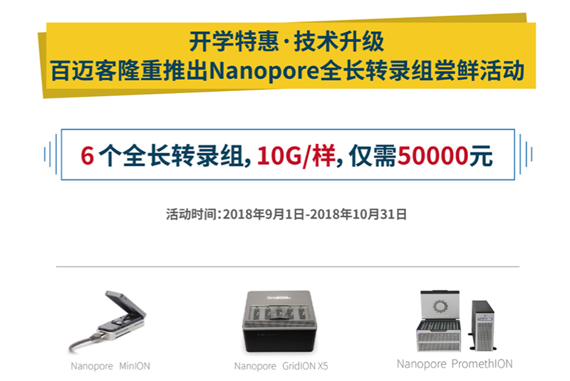 百邁客已與牛津納米孔公司(Oxford Nanopore Technologies,ONT)達(dá)成長(zhǎng)期合作,目前擁有MinION、GridION X5和PromethION三種型號(hào)全套測(cè)序儀,致力于將測(cè)序技術(shù)提供給科研者。