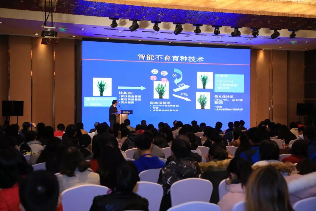 鄧興旺院士對(duì)應(yīng)用基因測(cè)序?qū)ΜF(xiàn)代育種技術(shù)的重要影響做了講解。介紹了新一代水稻和小麥雜交種質(zhì)生產(chǎn)技術(shù)的發(fā)展,報(bào)告中提到利用了一種新型的編碼GMS氧化還原酶的核基因OsNP1成功構(gòu)建了一種新型的水稻雄性不育體系。同時(shí)利用了基因組研究技術(shù)成功克隆了小麥雄性不育系Ms1。