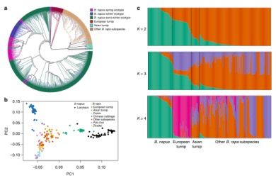 全基因組重測序這一技術(shù)手段已被用于鑒定有助于作物馴化和改良的基因,例如水稻(Oryza sativa),番茄(Solanum lycopersicum)和大豆(Glycine max)。三個(gè)蕓薹屬祖先種和異源多倍體種B. napus和B. juncea的基因組已經(jīng)釋放。199份B. rapa和119份B. oleracea種質(zhì)的重測序?qū)⒂兄谘芯?em>B. napus中每個(gè)亞基因組中的受選擇作用,同時(shí)將澄清該物質(zhì)的祖先種。