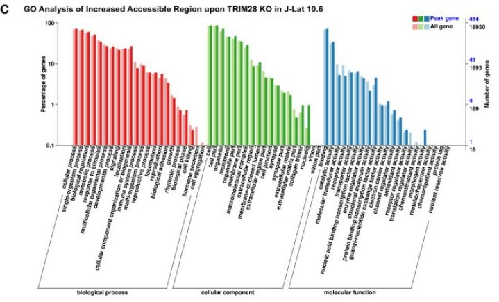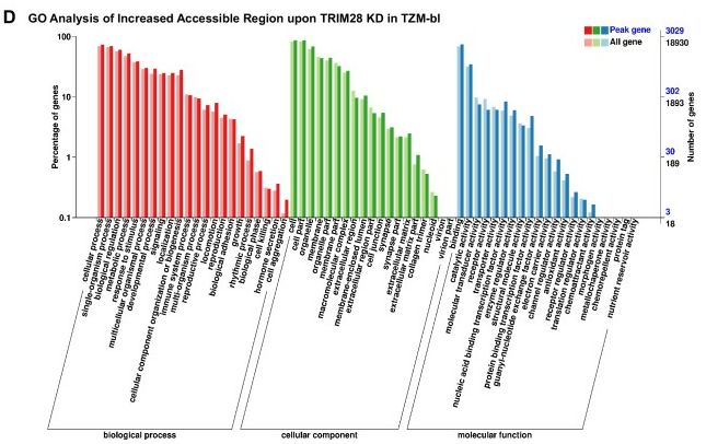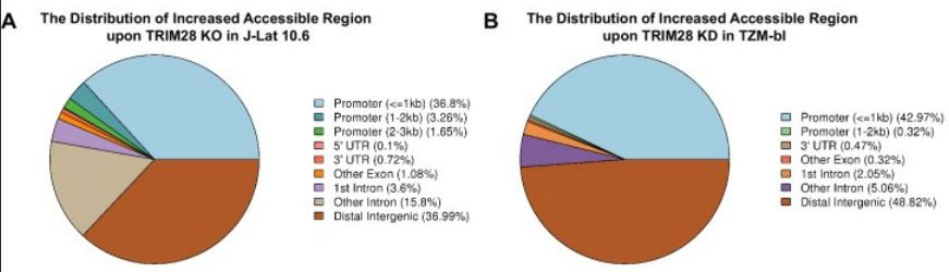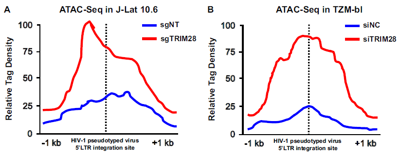 - ATAC-seq:J-Lat 10.6或TZM-bl細(xì)胞系,研究TRIM28缺失后HIV-1啟動(dòng)子的染色質(zhì)可及性