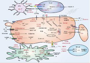 該研究篩選出23個與預(yù)后相關(guān)的胃癌候選蛋白藥物靶標(biāo),并提示彌漫型胃癌在以下四個通路最有可能找到治療靶標(biāo):經(jīng)典的腫瘤生長通路、代謝和氧化應(yīng)激過程、細(xì)胞黏附和侵襲過程以及腫瘤和腫瘤微環(huán)境中的免疫調(diào)控。此外,該研究團(tuán)隊(duì)還針對目前熱度較高的腫瘤免疫治療的“地形圖”進(jìn)行了詳盡的分析。發(fā)現(xiàn)最近研究火熱的PD-L1/PD1在彌漫性胃癌中鮮有表達(dá),不太可能適合用作彌漫型胃癌的治療靶標(biāo),而包括IDO1、ARG1和CD47/SIRPA等在內(nèi)的多種免疫相關(guān)蛋白在彌漫型胃癌中表達(dá)較高,尤其在PX3腫瘤組織中顯著高表達(dá),且表達(dá)量與生存時間顯著負(fù)相關(guān),有可能作為免疫治療的候選靶標(biāo)。