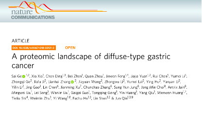胃癌(GC)在全球腫瘤死亡原因中排名第三,我國是胃癌發(fā)病和死亡的重災(zāi)區(qū)。Lauren分型從形態(tài)學(xué)上將GC分為三種類型:彌散型,腸型和混合型,彌漫型胃癌(DGC)占GC的約30%,預(yù)后最差,且缺少有效的靶向治療手段。盡管國際上發(fā)表過基于基因組和轉(zhuǎn)錄組的胃癌分子分型,但均沒有與臨床預(yù)后實(shí)現(xiàn)有效的關(guān)聯(lián)性。本文對胃癌組織及其附近組織進(jìn)行蛋白質(zhì)組學(xué)研究,是DGC的蛋白質(zhì)組學(xué)分析,研究成果發(fā)表在Nature Communications雜志上。