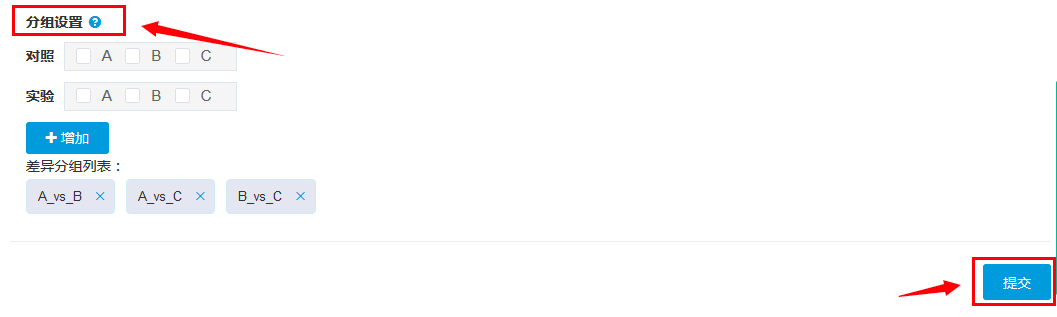 在進(jìn)行分組設(shè)置時(shí),我們可以自由添加分組,設(shè)置自己的組名,并在組名之后添加用于差異分析的樣品。