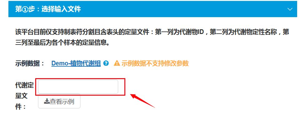 在代謝定量文件中導(dǎo)入質(zhì)譜檢測(cè)得到的代謝物的定量文件