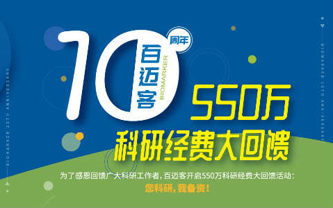 為了感謝廣大科研工作者的長期支持與信任,百邁客開啟550萬科研經費大回饋活動!