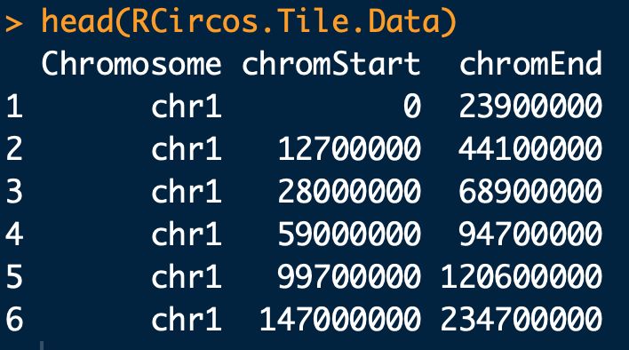 # 這個(gè)數(shù)據(jù)是RCicos內(nèi)置的人類(lèi)染色體信息,第四列和第五列信息用于展示染色體的核型??梢允÷?。