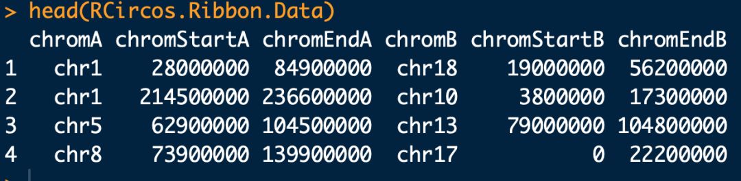 #?加載內(nèi)置的RCircos.Ribbon.Data數(shù)據(jù)集