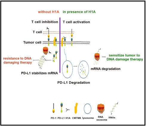 PD-L1(B7-H1)與RNA外切體競(jìng)爭(zhēng)調(diào)節(jié)DNA損傷反應(yīng),可作為對(duì)放療或化療敏感的靶標(biāo)