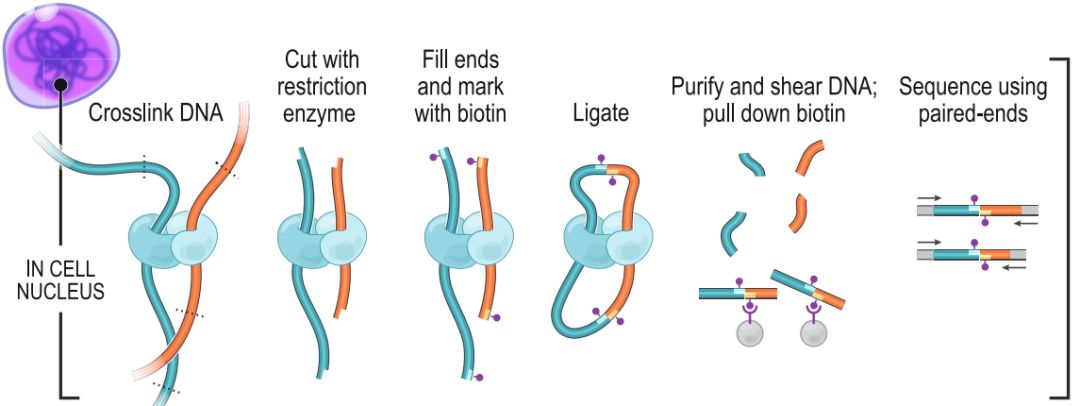 ChIA-PET:對感興趣的蛋白質(zhì)結(jié)合位點之間的遠程互作進行全基因組分析。