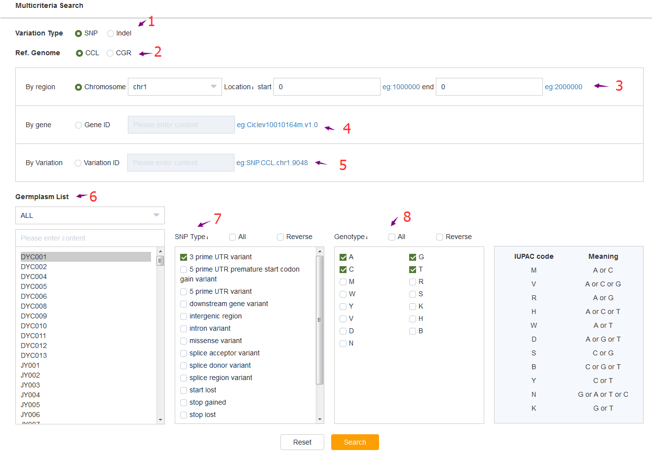 • 具體要檢索的基因型Genotype