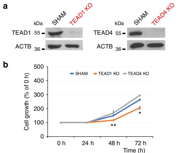 CRISPR-Cas9基因敲除與過(guò)表達(dá)(TEAD1、TEAD4、EGFR等);RNA-seq;體外–細(xì)胞增殖與遷移實(shí)驗(yàn);體內(nèi)–異種移植實(shí)驗(yàn);染色質(zhì)免疫沉淀實(shí)驗(yàn)等。