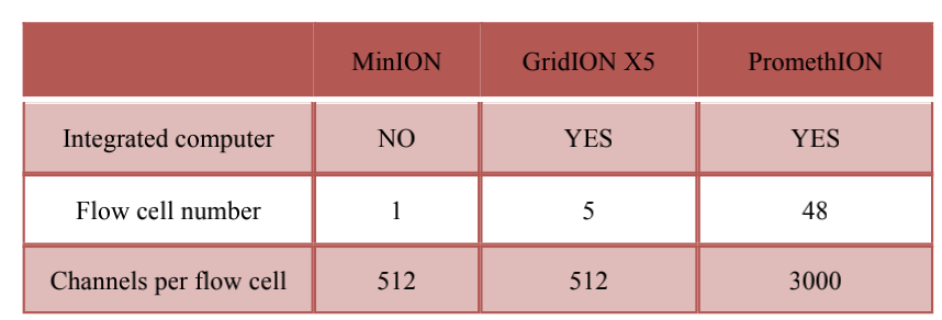 ONT平臺(tái):MinION、GridION X5、PromethION;具體區(qū)別如下: