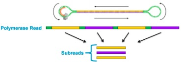 CLR Library與之前廣為理解的測(cè)序文庫(kù)相同,采用15 Kb、20 Kb、30 Kb等長(zhǎng)片段類型的DNA片段進(jìn)行文庫(kù)構(gòu)建,通過獲得Subreads來進(jìn)行下一及應(yīng)用拓展。
