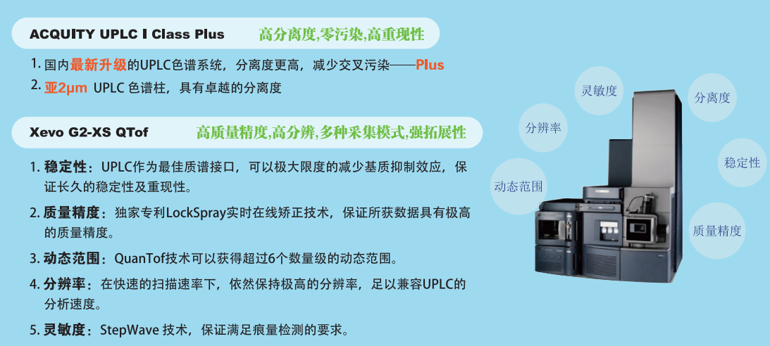 百邁客成功引進(jìn)Waters公司的Xevo G2-XS QTOF質(zhì)譜系統(tǒng),并配備UPLC I Class Plus色譜儀,這套系統(tǒng)擁有成熟耐用的技術(shù)體系和關(guān)鍵技術(shù),整體在分離度和準(zhǔn)確性上都有出色表現(xiàn),并且得到廣大科研工作者的認(rèn)可。百邁客依托于這套平臺(tái),自主建立實(shí)驗(yàn)體系,配合已經(jīng)開發(fā)出的代謝組分析流程,帶動(dòng)著代謝組學(xué)技術(shù)在儀器平臺(tái)和分析內(nèi)容上逐步迭代更新。