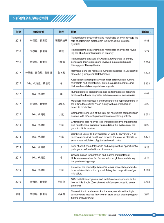 百邁客致力于將好的技術(shù)提供給科研者。代謝組服務(wù)現(xiàn)已細(xì)分服務(wù)內(nèi)容,涉及非靶向代謝組,脂質(zhì)非靶向代謝組,靶標(biāo)代謝組,植物高通量靶標(biāo),動(dòng)物高通量靶標(biāo),花青素高通量靶標(biāo),游離脂肪酸高通量靶標(biāo),氨基酸高通量靶標(biāo)等。目前,百邁客已經(jīng)協(xié)助發(fā)表大量多組學(xué)聯(lián)合文章,涉及到轉(zhuǎn)錄組 & 代謝組、微生物多樣性 & 代謝組,轉(zhuǎn)錄組 & 微生物多樣性 & 代謝組。點(diǎn)擊這里下載“百邁客生物代謝組成功案例>>百邁客生物代謝組成功案例