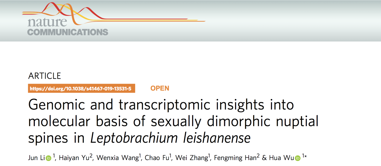 2019年12月5日,國際知名期刊Nature Communications (《自然·通訊》)在線發(fā)表了由華中師范大學(xué)與北京百邁客生物科技有限公司共同合作文章“Genomic and transcriptomic insights into molecular basis of sexually dimorphic nuptial spines in Leptobrachium leishanense”。華中師范大學(xué)生科院吳華教授為本文通訊作者,華中師范大學(xué)生科院李軍博士為論文的第一作者,百邁客生物科技作為第二單位共同參與研究。本研究借助二代、三代PacBio和HiC技術(shù)組裝了我國特有物種雷山髭蟾(Leptobrachium Leishanense)高質(zhì)量基因組,通過比較基因組學(xué)分析及雌雄個(gè)體不同發(fā)育時(shí)期的有參轉(zhuǎn)錄組分析鑒定了一系列與角質(zhì)刺性二態(tài)發(fā)育相關(guān)的生物學(xué)通路和關(guān)鍵基因。研究成果首次較全面地解析了兩棲動物性二態(tài)形成相關(guān)的重要生物學(xué)通路以及關(guān)鍵基因,彌補(bǔ)了相關(guān)研究的不足。該成果不僅為兩棲動物基因組數(shù)據(jù)庫提供了高質(zhì)量的參考基因組,而且對于深入理解脊椎動物性二態(tài)形成及調(diào)控的分子機(jī)制具有重要意義。