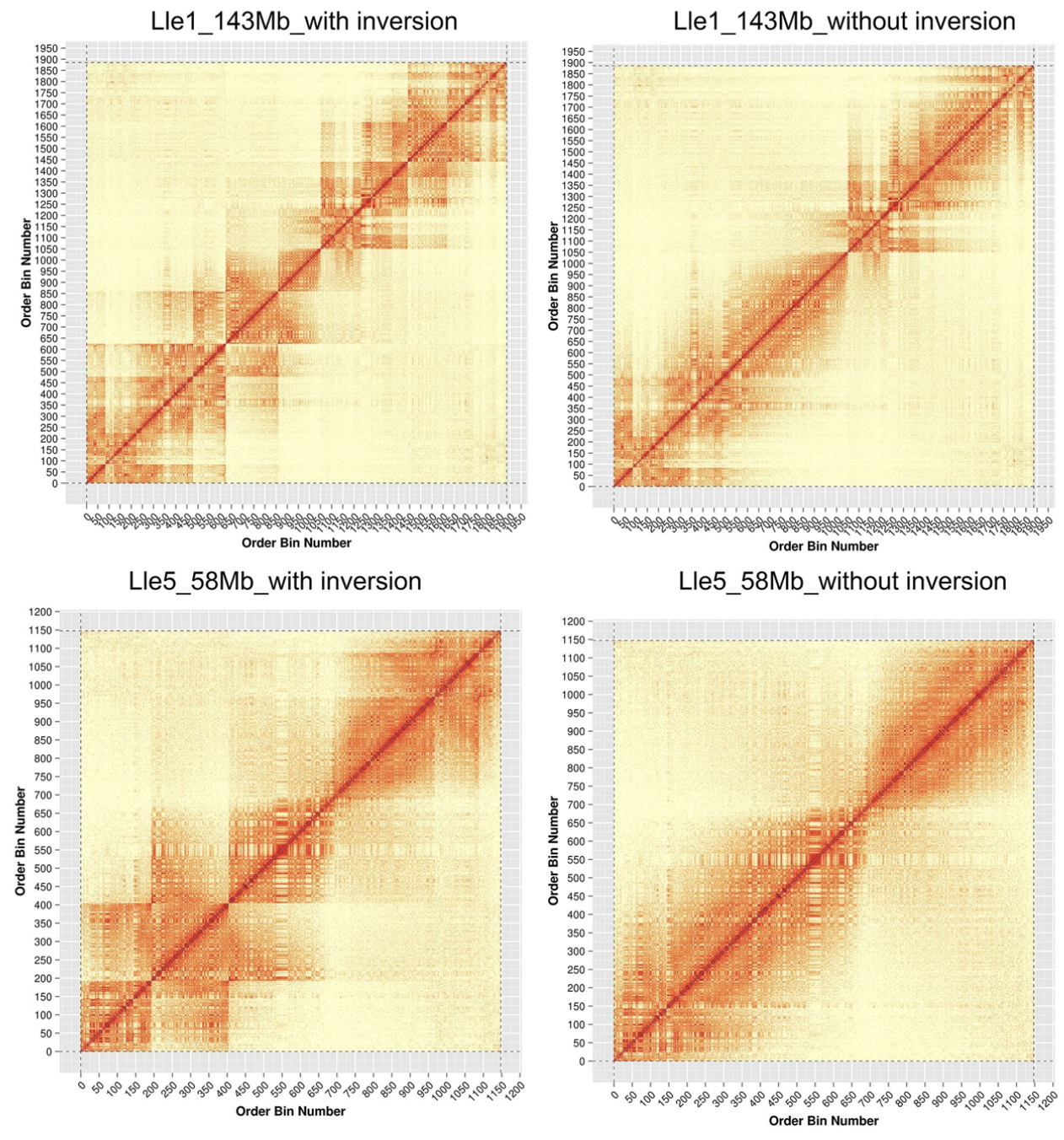 圖5 HiC互作信號鑒定雷山髭蟾染色體倒位