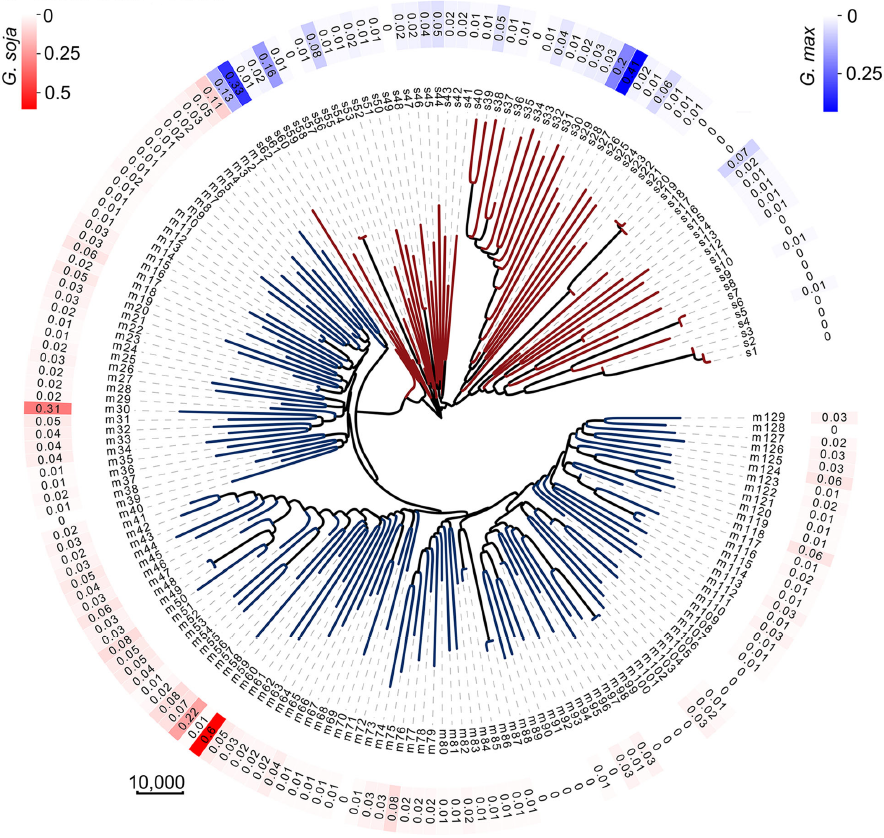 圖1?野生大豆和栽培大豆的進(jìn)化樹