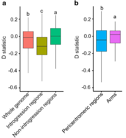 圖2?種間基因滲入在全基因組的分布