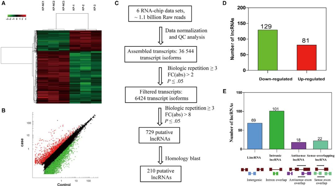 1.KRAS-G12D突變和p53基因敲除小鼠肺腺癌中LncRNA的表達