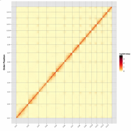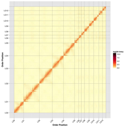 2019年9月30日,福建農(nóng)林大學基因組研究中心明瑞光教授團隊聯(lián)合多個單位共同合作的紅苞鳳梨研究成果在國際知名期刊Nature Genetics在線發(fā)表。該研究獲得了513 Mb基因組序列,并通過百邁客Hi-C實驗技術(shù)助力,最終將456 Mb基因組定位到25條染色體上(掛載率約88.8%),完成了菠蘿基因組學領(lǐng)域的再一次突破[2]。