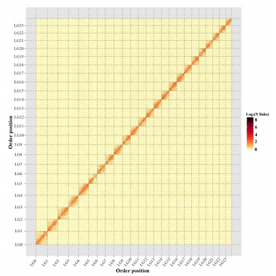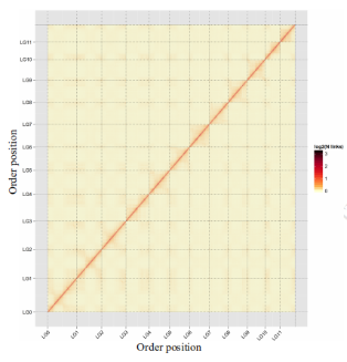 Hi-C測序深度及掛載率:~84.6×;99.44%