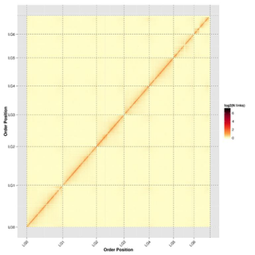 Hi-C測序深度及掛載率:~38.56×;99.25%