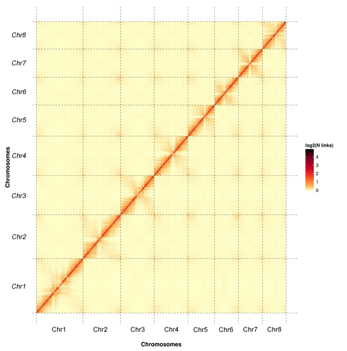 Hi-C測序深度及掛載率:77.93×;96.41%
