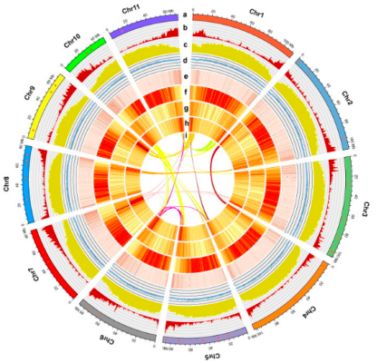 2018年5月8日,中國農(nóng)業(yè)科學院棉花研究所所長李付廣研究員、武漢大學朱玉賢院士、中國農(nóng)業(yè)科學院棉花研究所杜雄明研究員、中國農(nóng)業(yè)科學院農(nóng)業(yè)基因組研究所所長黃三文研究員、林濤博士與北京百邁客生物科技有限公司關(guān)于亞洲棉的合作成果發(fā)表在Nature Genetics上。利用三代PacBio測序+Hi-C技術(shù)完成了亞洲棉基因組的重新組裝,將基因組Contig N50從72 kb提升到1.1 Mb,并將91.98%的序列掛載至染色體水平上,為亞洲棉后續(xù)的群體遺傳學等相關(guān)研究奠定了基礎(chǔ)[5]。
