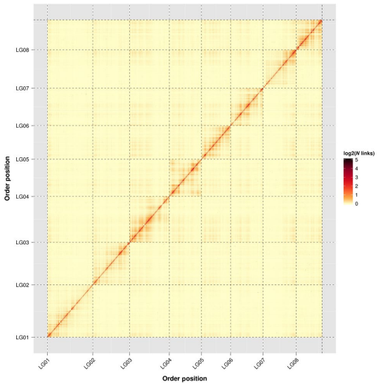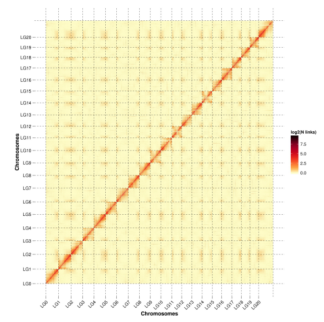 Hi-C是染色質(zhì)區(qū)域捕獲(Chromosome conformation capture)與高通量測序(High-throughput sequencing)相結(jié)合而產(chǎn)生的一種新技術(shù)。通過甲醛處理將DNA與蛋白質(zhì)交聯(lián)在一起從而固定DNA的構(gòu)象,并進行酶切、生物素引入、酶連和提取,然后對處理好的核酸進行文庫構(gòu)建和高通量測序,最終通過對測序數(shù)據(jù)進行分析即可揭示染色體片段間的交互信息。該技術(shù)僅利用單個個體就可以將基因組序列定位到染色體,從而進行染色體水平的研究。