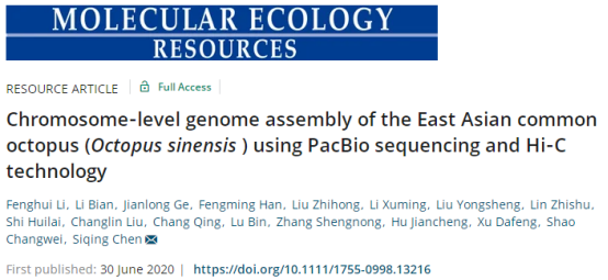 近日,中國水產(chǎn)科學(xué)研究院黃海水產(chǎn)研究所陳四清研究員團(tuán)隊(duì)與北京百邁客生物科技有限公司合作完成了中國真蛸(Octopus sinensis)染色體水平基因組,相關(guān)研究成果發(fā)表在知名期刊Molecular Ecology Resources上。該研究是陳四清研究員團(tuán)隊(duì)繼今年5月發(fā)表超高質(zhì)量綠鰭馬面鲀基因組后在水生生物基礎(chǔ)研究領(lǐng)域取得的又一項(xiàng)重要研究成果。