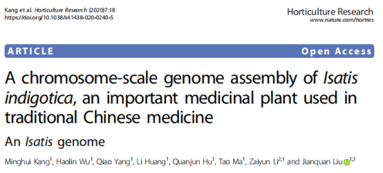 2020年2 月1日,四川大學(xué)生命科學(xué)學(xué)院劉建全課題組與華中農(nóng)業(yè)大學(xué)作物遺傳改良國家重點(diǎn)實(shí)驗(yàn)室李再云課題組首次完成了菘藍(lán)(Isatis indigotica,2n=14)染色體級別基因組圖譜繪制。該研究利用Pacbio測序(140X)結(jié)合北京百邁客生物技術(shù)有限公司的Hi-C技術(shù)(284X)組裝得到294Mb高質(zhì)量基因組(contigN50=1.2Mb)?;谕此阉骱凸δ茏⑨?,確定了該物種主要化合物(如吲哚類、萜類、黃酮、木脂素等物質(zhì))的可能生物合成通路和相關(guān)的候選基因。該研究強(qiáng)調(diào)了基因組測序在鑒定藥用植物代謝產(chǎn)物合成候選基因中的重要性,為今后十字花科植物比較基因組等研究提供了重要遺傳信息。