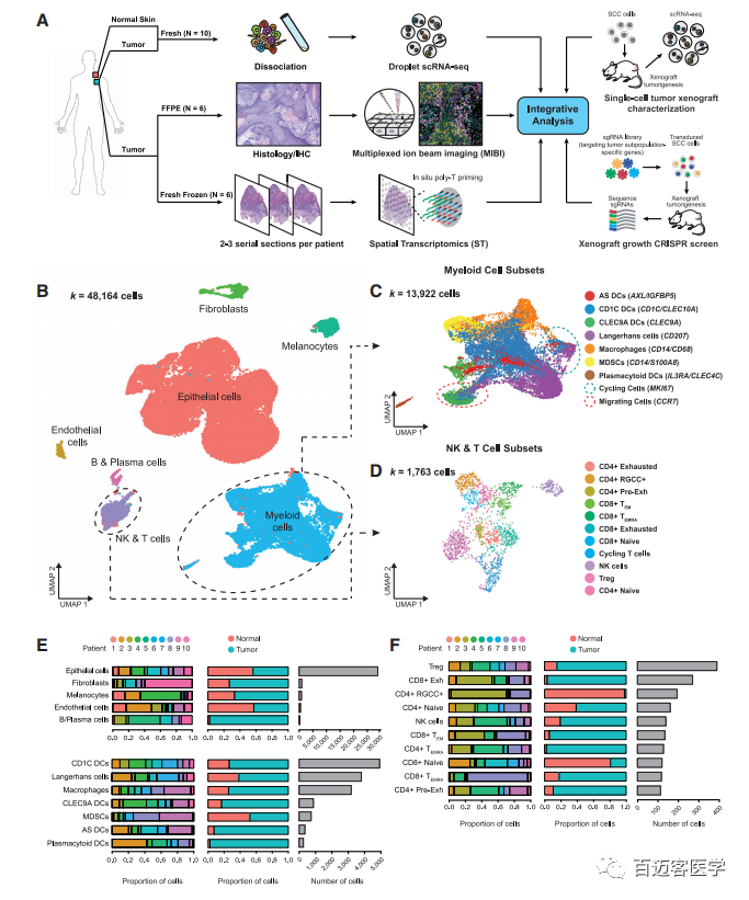 圖1|正常皮膚和鱗狀細胞癌的單細胞轉(zhuǎn)錄圖譜