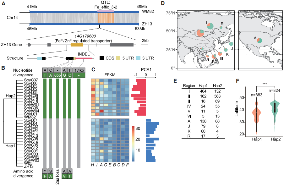結(jié)構(gòu)變異可能會(huì)通過(guò)改變基因區(qū)或基因側(cè)翼區(qū)的序列影響基因的轉(zhuǎn)錄調(diào)控及表達(dá)。如,基因的串聯(lián)重復(fù)可能會(huì)引起基因劑量的變化,外顯子的復(fù)制可能會(huì)引起可變剪接,順式作用元件區(qū)的插入或缺失可能會(huì)破壞或者改變轉(zhuǎn)錄調(diào)控因子結(jié)合位點(diǎn)。例如,大豆14號(hào)染色體上存在一個(gè)調(diào)控Fe2+/Zn2+轉(zhuǎn)運(yùn)蛋白的基因SoyZH13_14G179600,一些品種的基因組中,該基因的啟動(dòng)子區(qū)存在一個(gè)1.4kb的缺失,RNA-seq數(shù)據(jù)分析顯示,該啟動(dòng)子缺失會(huì)使轉(zhuǎn)運(yùn)蛋白表達(dá)量降低[3]。
