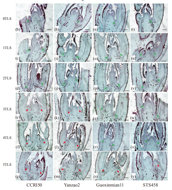 11個不同的組織:3日齡種子(種子)、2周齡整株苗(苗)、根、莖、2周齡苗的第一片全展葉(葉1),30日齡植株頂?shù)诙~(葉2)、旗葉(葉3)、第四葉(葉4)、未成熟的圓錐花序(圓錐花序1)、授粉期圓錐花序(圓錐花序2)、灌漿期圓錐花序(圓錐花序3);葉2有5個生物學(xué)重復(fù),其他有3個生物學(xué)重復(fù)。