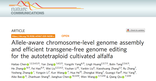 文章中利用了基因組三代測(cè)序技術(shù),獲得染色體級(jí)別的紫花苜?;蚪M的同時(shí),攻克了同源多倍體物種基因組組裝難題,組裝獲得了4個(gè)單倍型紫花苜?;蚪M,為后續(xù)基因編輯研究做了重要的鋪墊,進(jìn)而通過新技術(shù)CRISPR/Cas9基因編輯對(duì)控制相應(yīng)表型性狀基因進(jìn)行改造,對(duì)于紫花苜蓿后續(xù)分子生物學(xué)研究具有重要而深遠(yuǎn)的意義。