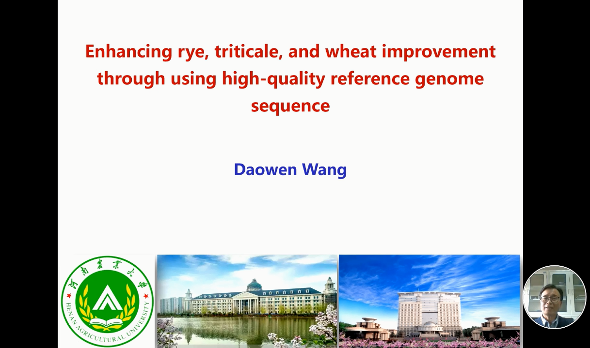 河南農(nóng)業(yè)大學(xué)王道文研究員詳述了黑麥具有較大的基因組特征(~7 – 8 Gb),其抗寒、抗病、抗逆和耐旱等多種優(yōu)良的特性對谷物研究和生產(chǎn)帶來了巨大貢獻。并對黑麥染色體的進化,特別是與水稻、小麥、大麥的染色體的結(jié)合進行了闡述。介紹了中國黑麥細胞遺傳學(xué)和育種研究相關(guān)進程與成果。表示黑麥泛基因組研究將擴大對黑麥基因組多樣性的了解,促進黑麥、小黑麥和小麥的更有效改良。最后王道文研究員表示基因組學(xué)知識和基因組學(xué)工具正在給作物改良帶來新一輪的綠色革命。