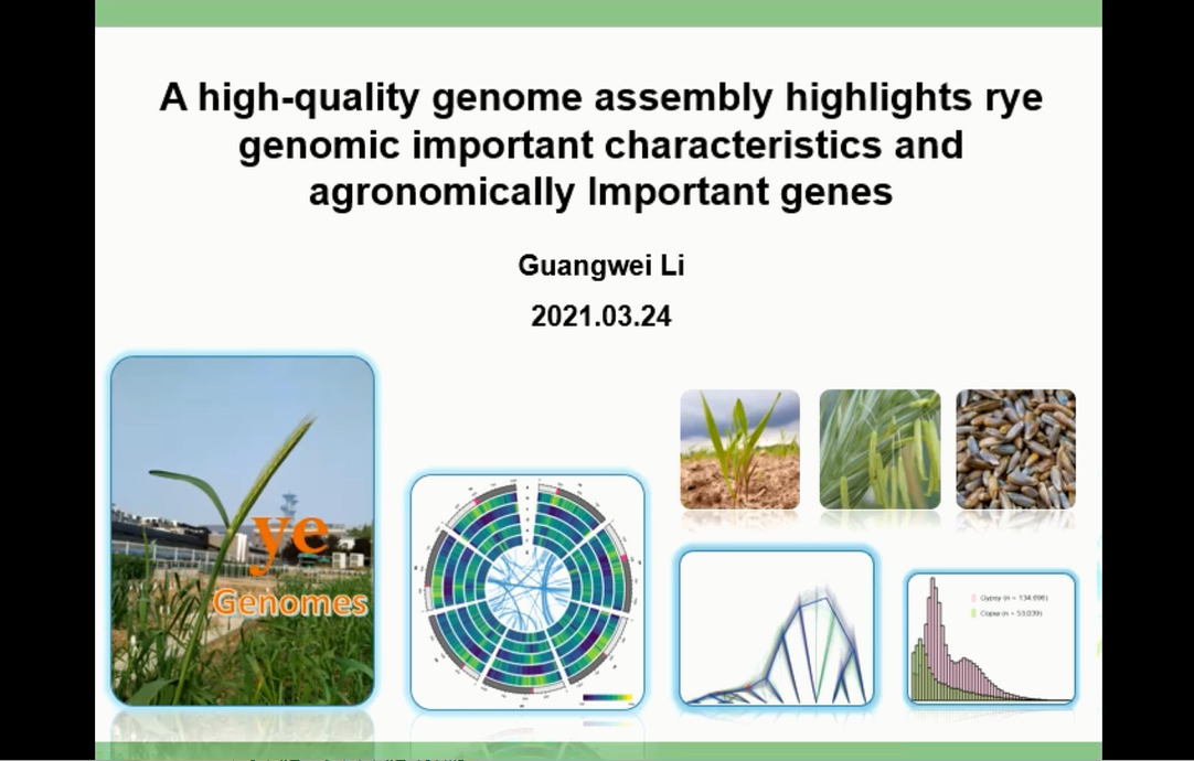 河南農(nóng)業(yè)大學(xué)李廣偉博士系統(tǒng)解析了黑麥的演化歷史,展示了黑麥的分類起源和世界遺傳資源分布,并表示黑麥作為全球麥類基因資源具有重要的研究意義。通過中國栽培種“威寧黑麥”基因組的高質(zhì)量精細物理圖譜的構(gòu)建,展示了其復(fù)雜的基因組特征、復(fù)雜的染色體變異以及淀粉合成、儲存蛋白、抽穗期及馴化等相關(guān)基因的詳細機制。最后李廣偉博士表示威寧黑麥基因組的破譯對深化比較谷類基因組研究,加速黑麥及相關(guān)谷類作物的遺傳改良具有重要價值。