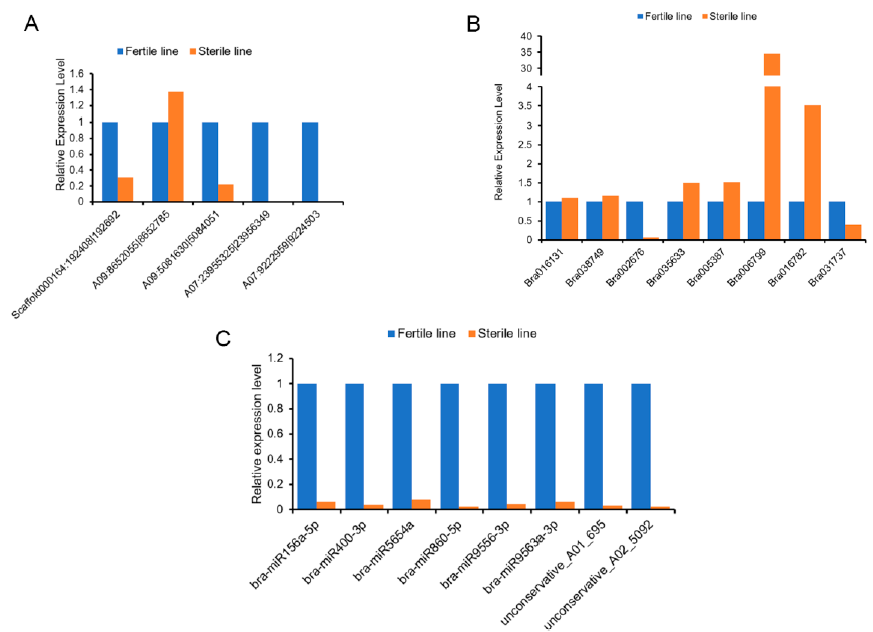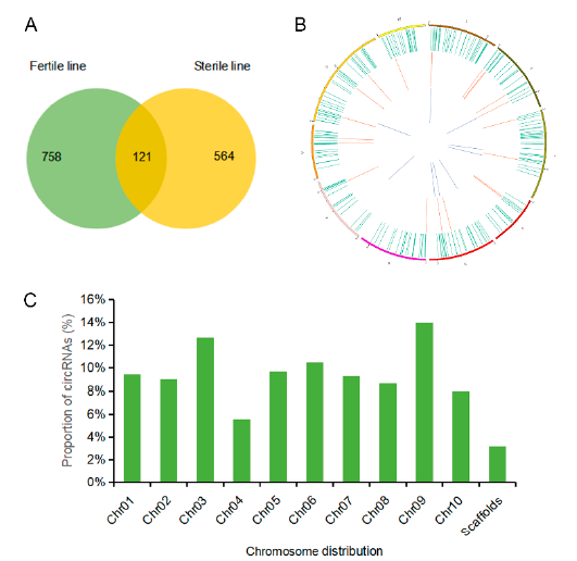 在以往的研究中,CircRNA作為內源非編碼RNA的一員,被認為具有miRNA海綿和競爭性內源RNA(ceRNA)功能。關于CircRNA在雄性不育和花藥發(fā)育中研究較少,因此作者在油菜中構建了細胞質雄性不育系(CMS),對不育系和可育系花蕾進行全轉錄組測序,揭示了油菜花藥發(fā)育中新的circRNA–miRNA–mRNA調控網絡,為進一步研究CircRNA和miRNA在花藥發(fā)育中的功能提供了一定的基礎。